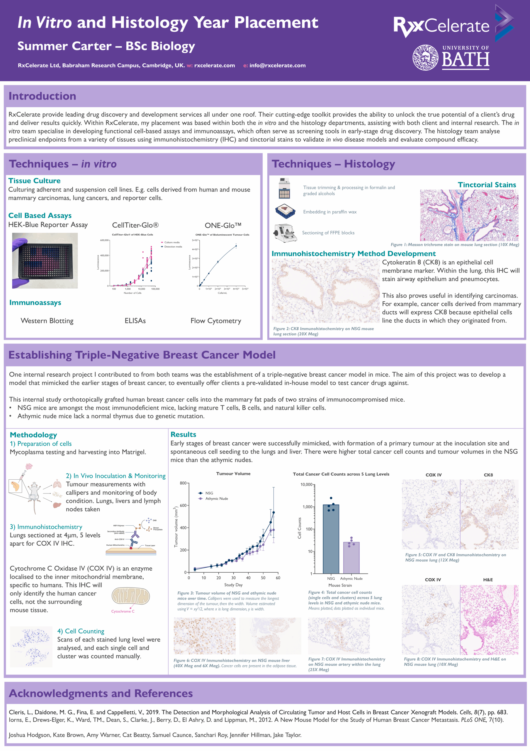 In 2022, 2.3 million women were diagnosed with, and 670,000 women died from breast cancer globally (WHO, 2024). Breast cancer is therefore the most prevalent cancer in women. Although localised conditions have a survival rate of 85%, the survival rate drops to 23% for women with distant metastases (Iorns et al., 2012). RxCelerate has previously designed and used bespoke cancer models for specific clients. However, the aim of this internal study was to develop and validate a model that mimicked the earlier stages of breast cancer, to eventually offer clients an ‘off-the-shelf’ metastatic model to test cancer drugs against.